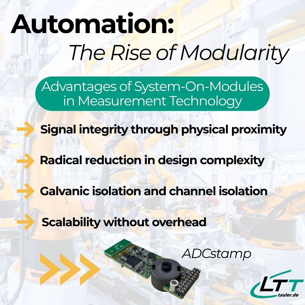 Vier Gründe, warum ein dediziertes Ein-Messkanal-Modul wie der ADCstamp für die Automation so attraktiv ist: